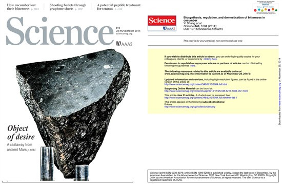 本網(wǎng)訊 11月29日,從中國農(nóng)業(yè)科學(xué)院蔬菜花卉研究所和深圳農(nóng)業(yè)基因組研究所在京聯(lián)合舉行的新聞發(fā)布會上獲悉,由蔬菜所研究員、基因組所副所長黃三文領(lǐng)導(dǎo)的科研團隊通過歷經(jīng)5年的研究發(fā)現(xiàn)了黃瓜苦味合成、調(diào)控及馴化的分子機制。這項研究揭開了黃瓜變苦的秘密,為將來培育無苦味黃瓜新品種和開發(fā)合成抗癌藥物——苦味物質(zhì)葫蘆素邁出了關(guān)鍵一步。最新一期的國際頂級學(xué)術(shù)期刊《科學(xué)(Science)》雜志以長篇幅論文的形式發(fā)表了這一研究成果。