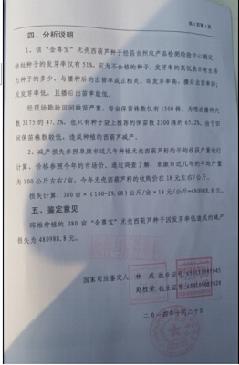 據(jù)邱先生介紹,由于甘肅民勤縣全盛永泰農(nóng)業(yè)有限公司的“金尊寶”葫蘆種出芽率太低,“金尊寶”屬于劣種子,給他造成了48萬(wàn)多元的經(jīng)濟(jì)損失。為此,他曾委托新疆農(nóng)林牧司法鑒定中心進(jìn)行過(guò)司法鑒定(如圖)。而在向民勤縣全盛永泰農(nóng)業(yè)院校甘肅的負(fù)責(zé)人魏姓總經(jīng)理討要說(shuō)法時(shí),魏總表示僅僅給他賠償30萬(wàn)元,對(duì)于剩余的18萬(wàn)多拒絕賠償,并且只愿意用他們公司的種子沖抵賠償,而拒絕賠償錢款。邱先生表示他不能接受。