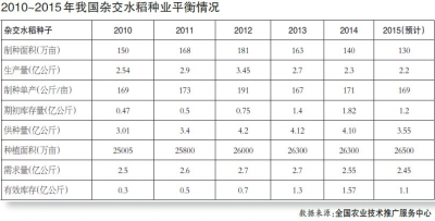 2014年國(guó)內(nèi)雜交水稻制種面積140萬(wàn)畝,比上年減少23萬(wàn)畝左右,同比下降14.11%,全國(guó)新產(chǎn)種子約2.3億公斤,總產(chǎn)比去年減少4200萬(wàn)公斤,同比下降15.55%。2015年雜交水稻種子總供給量為3.55億公斤,預(yù)計(jì)2015年的大田用種和出口合計(jì)需種量約2.45億公斤,預(yù)期期末庫(kù)存水平將降至1.1億公斤左右,明年市場(chǎng)壓力有所減輕。從歷史規(guī)律看雜交稻種市場(chǎng)消化1.1億公斤庫(kù)存,至少要2~3年的時(shí)間,可見(jiàn)水稻種子過(guò)剩是常態(tài);從結(jié)構(gòu)上看,三系雜交稻種子過(guò)剩嚴(yán)重,兩系雜交稻種子供求基本平衡,考慮極端天氣災(zāi)害,預(yù)計(jì)兩系稻品系種子還可能出現(xiàn)供應(yīng)偏緊情形。