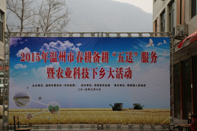 為掀起春耕備耕高潮,做好春季農(nóng)業(yè)科技服務(wù)工作,3月10日,溫州市委農(nóng)辦(市農(nóng)業(yè)局)、蒼南縣農(nóng)業(yè)局聯(lián)合在蒼南縣橋墩鎮(zhèn)黃壇社區(qū)舉辦了2015年溫州市春耕備耕“五送”服務(wù)暨農(nóng)業(yè)科技下鄉(xiāng)大活動。