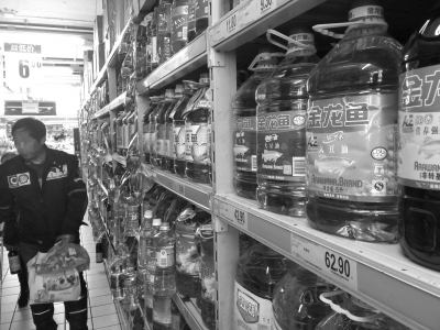 超市內(nèi)非轉(zhuǎn)基因食用油已被標(biāo)示。京華時(shí)報(bào)記者陶冉攝