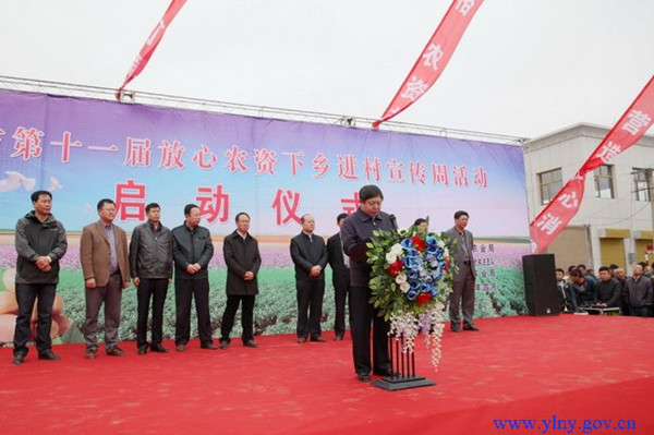 4月2日,我市“第十一屆放心農資下鄉(xiāng)進村宣傳周”活動在定邊縣白泥井鎮(zhèn)正式啟動。定邊縣副縣長馬俊飛致辭,定邊縣農資經營大戶朱子春代表全市農資經營企業(yè)作表態(tài)發(fā)言,市農業(yè)局局長王宏巖在啟動儀式上講話并宣布宣傳周活動正式啟動。副局長思治權主持啟動儀式。市農業(yè)畜牧獸醫(yī)中心、市農機服務中心和定邊縣的相關領導,市、縣農業(yè)部門的執(zhí)法人員,白泥井鎮(zhèn)的領導及相關工作人員,以及我市部分農資生產經營企業(yè)的代表參加了啟動儀式。