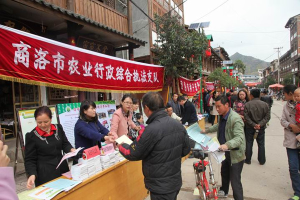 當(dāng)前正值春耕生產(chǎn)關(guān)鍵時(shí)節(jié),為切實(shí)保障春耕生產(chǎn)順利開展,引導(dǎo)農(nóng)民群眾理性購(gòu)買、科學(xué)使用農(nóng)資產(chǎn)品,提升農(nóng)民依法維護(hù)自身權(quán)益的能力,積極營(yíng)造打假護(hù)農(nóng)保春耕的良好社會(huì)氛圍,4月7日,商洛市農(nóng)業(yè)行政綜合執(zhí)法支隊(duì)王博支隊(duì)長(zhǎng)帶領(lǐng)4名執(zhí)法人員赴丹鳳縣竹林關(guān)參加了商洛市2015年放心農(nóng)資下鄉(xiāng)進(jìn)村宣傳活動(dòng)。