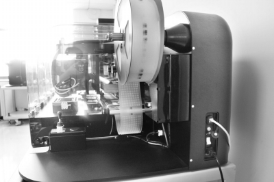 第一步,建立反應(yīng)體系。陣列式分析卷帶外觀很像相機(jī)的膠卷,每張中間是384孔。隨著陣列卷帶的移動(dòng),每個(gè)小孔就自動(dòng)裝好一個(gè)測(cè)試樣品,并自動(dòng)完成覆膜封口。 第二步,PCR反應(yīng)。樣本經(jīng)過(guò)94℃高溫變性、60℃-65℃低溫退火、72℃適溫延伸三個(gè)步驟完成1個(gè)循環(huán)。一次PCR反應(yīng)要做35個(gè)循環(huán)。陣列式分析卷帶,在機(jī)械傳動(dòng)裝置作用下,在3個(gè)恒溫水浴鍋中循環(huán),節(jié)約了傳統(tǒng)PCR儀升溫降溫的時(shí)間,也增加了實(shí)驗(yàn)結(jié)果的穩(wěn)定性。 第三步,熒光儀檢測(cè)。做完P(guān)CR反應(yīng),將陣列式分析卷帶放到熒光儀的入口處,卷帶會(huì)像膠卷一樣進(jìn)入熒光儀,結(jié)果以不同顏色在電腦上顯示出來(lái)。