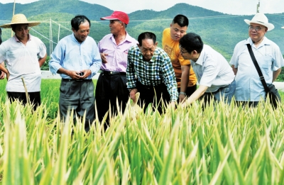 連日來,來自廣東、廣西、湖南、海南等地水稻專家對袁隆平指導(dǎo)的第五期超級雜交稻“超優(yōu)千號”三亞示范基地進(jìn)行了測產(chǎn)驗(yàn)收。對海棠灣百畝連片示范基地測產(chǎn)驗(yàn)收的結(jié)果是平均畝產(chǎn)達(dá)941.79公斤,打破海南歷史最高紀(jì)錄。