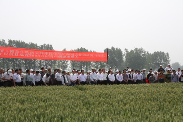 與會(huì)領(lǐng)導(dǎo)和專(zhuān)家認(rèn)為,該項(xiàng)目針對(duì)區(qū)域性低溫、高溫、干旱、大風(fēng)等災(zāi)害性天氣危害頻繁現(xiàn)象,通過(guò)品種減災(zāi)、配套栽培技術(shù)減災(zāi)、農(nóng)化產(chǎn)品減災(zāi)、機(jī)械裝備減災(zāi),實(shí)現(xiàn)區(qū)域性小麥高產(chǎn)高效優(yōu)質(zhì)生產(chǎn);鄭麥7698較好實(shí)現(xiàn)了優(yōu)質(zhì)和高產(chǎn)的結(jié)合,同時(shí)兼具較好抗病、抗逆特性,是較理想的抗災(zāi)減災(zāi)品種,適宜在黃淮海區(qū)域很好地推廣,對(duì)保障國(guó)家糧食安全意義重大。