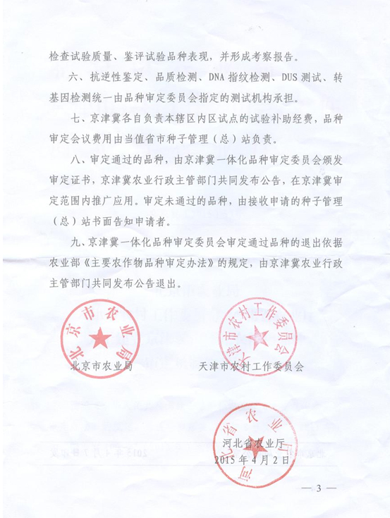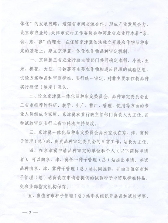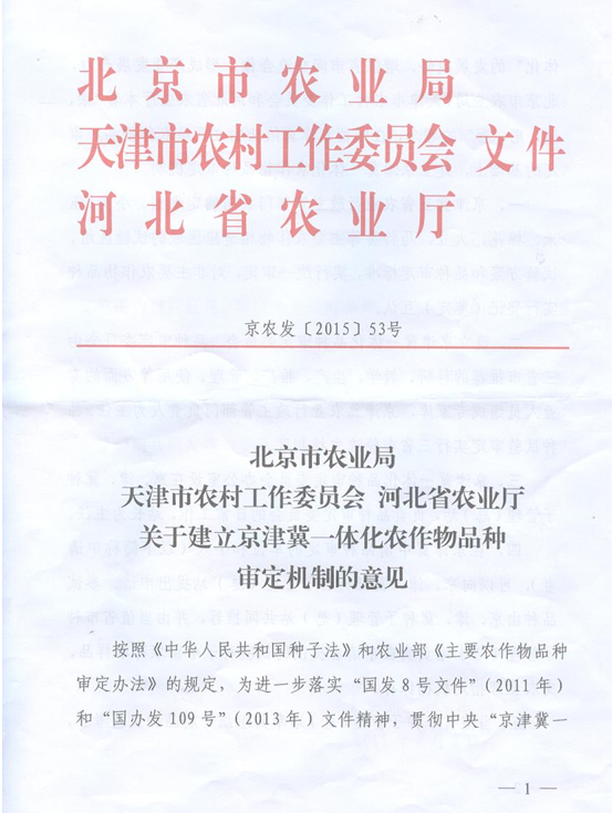 關(guān)于建立京津冀一體化農(nóng)作物品種審定機(jī)制的意見