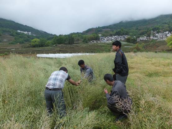近日,金平縣農(nóng)業(yè)局領(lǐng)導(dǎo)率技術(shù)員到金河鎮(zhèn)哈尼田試種的油菜新品種進(jìn)行了田間測產(chǎn),技術(shù)人員對試驗(yàn)品種的株行距、畝株數(shù)、株高、單株有效角果數(shù)和角粒數(shù)分別進(jìn)行了測量、計(jì)算和分析,花油6號畝產(chǎn)量達(dá)186.76公斤、花油3號畝產(chǎn)量達(dá)87.3公斤、云花油9號畝產(chǎn)量達(dá)117.3公斤、云油雜2號畝產(chǎn)量達(dá)96公斤,為今后金平縣種植油菜提供了科學(xué)的依據(jù)。