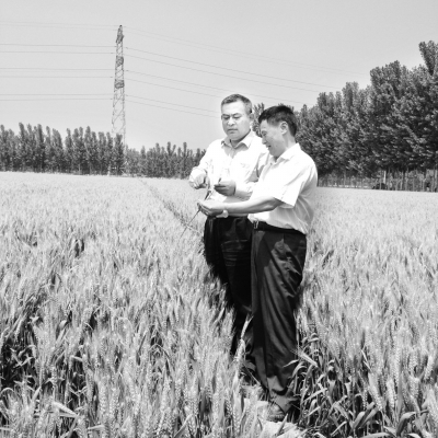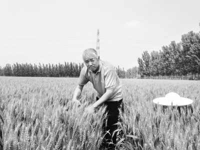 中國農(nóng)科院研究員趙秉強在德迪糧食種植合作社麥田查看小麥長勢。
