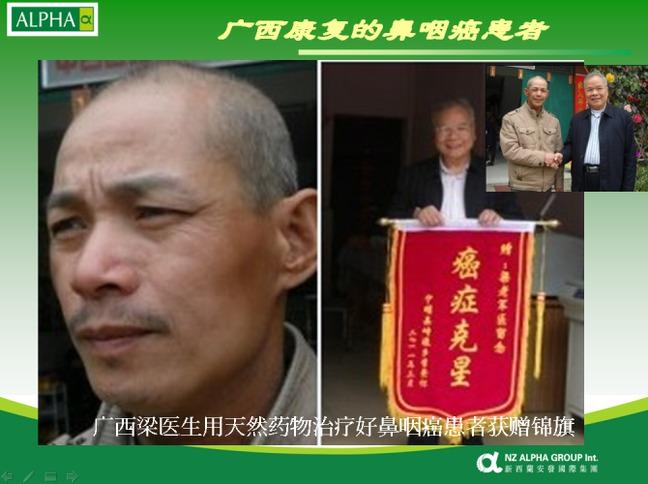 廣西的梁軍醫(yī)用安發(fā)國際的天然藥物三個月治好了鼻咽癌患者獲得患者的錦旗上書:癌癥克星