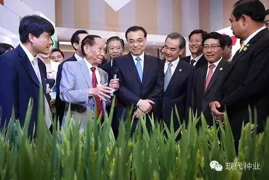 在3 月23 日的瀾滄江-湄公河國(guó)家合作展上,泰國(guó)總理巴育、柬埔寨首相洪森、老撾總理通邢、緬甸副總統(tǒng)賽茂康、越南副總理范平明等對(duì)中國(guó)水稻品種都表現(xiàn)出濃厚興趣。袁隆平隨李克強(qiáng)總理,向東南亞五國(guó)領(lǐng)導(dǎo)人推介超級(jí)稻。這是中國(guó)雜交稻“走出國(guó)門”的重要一步,也是瀾湄國(guó)家成為“世界糧倉(cāng)”的有力支撐。