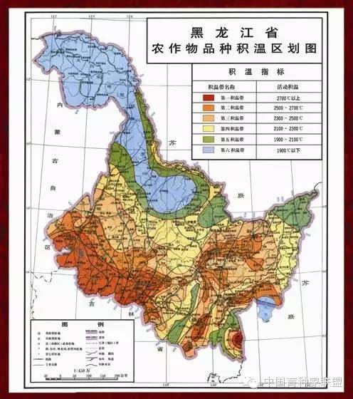 第六積溫帶(1900℃):大嶺林場(chǎng),沾北林場(chǎng),孫吳辰清鎮(zhèn),龍門農(nóng)場(chǎng),長(zhǎng)水河農(nóng)場(chǎng),大興安嶺地區(qū)。