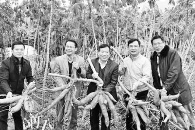 2014年11月,廣西農(nóng)科院院長白先進對韋本輝團隊在廣西率先選育的木薯雜交新品種連片200畝種植示范基地進行考察,看到株型好、葉片在初冬季節(jié)仍然繁茂,結(jié)薯情況表現(xiàn)良好,給予充分肯定,不禁伸出大拇指表示贊賞。2015年1月,國家木薯產(chǎn)業(yè)技術體系首席科學家、中國熱帶農(nóng)業(yè)科學院熱帶作物品種資源研究所李開綿研究員,在考察該團隊選育的木薯雜交新品種后,也對其給予高度評價。
