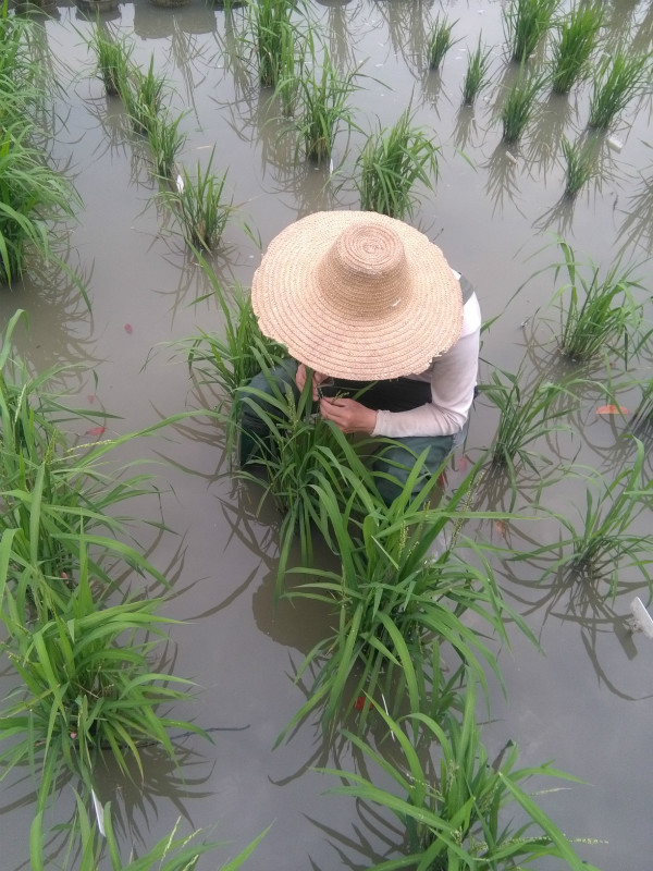 2016年4月下旬,玉溪市元江縣農(nóng)業(yè)技術(shù)推廣站基地內(nèi)種植的用于雜交育種的水稻開始陸續(xù)抽穗,云南省農(nóng)科院生物所育種專家進(jìn)駐試驗(yàn)田,按照前期規(guī)劃正忙碌進(jìn)行水稻雜交育種。選擇需要性狀的水稻品系作為雜交親本,選擇生長良好的母本植株進(jìn)行去雄,然后選擇正在開花的父本和去雄后的母本同套一袋隔離,做好掛牌標(biāo)示,為了提高授粉效率,對其進(jìn)行人工授粉。