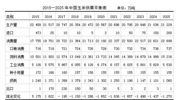2015—2025年中國(guó)飼料供需平衡表 單位:萬(wàn)噸