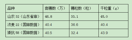 矮抗58沒(méi)有近幾年的試驗(yàn)數(shù)據(jù),但結(jié)合其審定公告及大田種植表現(xiàn),豐產(chǎn)性、抗凍性不及山農(nóng)32。