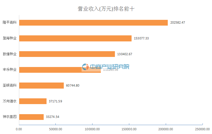 營(yíng)業(yè)收入排名:隆平高科2015年?duì)I業(yè)收入20.26億元,位居行業(yè)第一;登海種業(yè)和敦煌種業(yè)分別15.31億元和13.04億元,分列二三位。