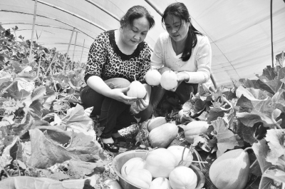 圖為5月12日,游客正在東??h石湖鄉(xiāng)農(nóng)業(yè)資源開發(fā)項目區(qū)采摘香甜瓜。 張正友攝