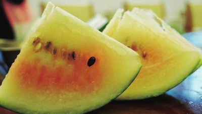 表皮翠綠,切開后紅黃鑲嵌,猶如冰淇淋的奶黃,吃一口酥爽可口,西瓜味醇正清甜,甜度適中,入口即化,雙色還會隨外界氣溫的變化而變化,美其名曰“雙色冰淇淋”。作為西瓜新品種,“雙色冰淇淋”實際早在1998年就培育而成了。