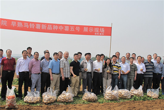 5月19日,中國農(nóng)業(yè)科學(xué)院蔬菜花卉研究所在湖北省襄陽市集中展示了“中薯“系列早熟高產(chǎn)抗病馬鈴薯新品種新品系,并對襄陽市襄州區(qū)張集鎮(zhèn)萬畝“中薯5號”高產(chǎn)創(chuàng)建示范片進行了實地測產(chǎn)驗收。測產(chǎn)結(jié)果顯示該示范片平均畝產(chǎn)達4121.38公斤,商品薯率達93.6%,比“早大白”增產(chǎn)49.02%,按照當(dāng)天產(chǎn)地價格每公斤3.0元計算,畝產(chǎn)值12364.14元,扣除生產(chǎn)成本后畝純收入10614.14元。農(nóng)業(yè)部種植業(yè)司、科教司、全國農(nóng)技推廣中心、湖北省農(nóng)業(yè)廳和湖北省農(nóng)科院等有關(guān)領(lǐng)導(dǎo),萬建民和方智遠院士出席會議。