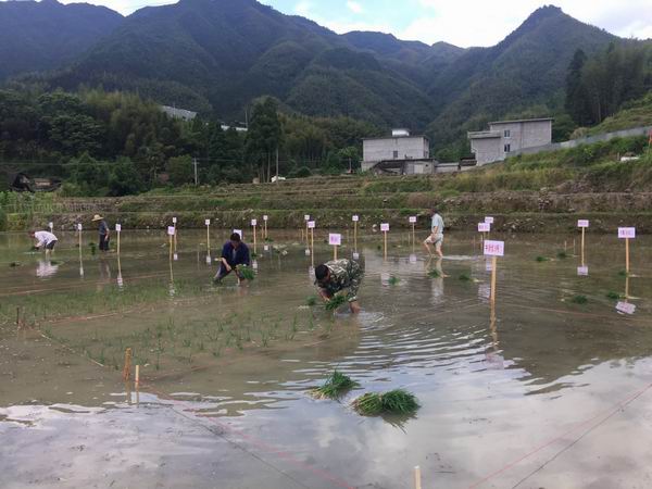 5月31日,景寧縣農(nóng)業(yè)局種子站、農(nóng)作站等科站的農(nóng)技人員深入東坑鎮(zhèn)馬坑村“景寧國(guó)昌稻魚共生農(nóng)場(chǎng)”現(xiàn)場(chǎng)布置單晚新品種田間對(duì)比試驗(yàn)。