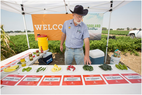 TerryBerke展示W(wǎng)ooland研發(fā)中心試驗(yàn)田里的辣椒品種 (圖/SueCockrell, Enterprise photo)