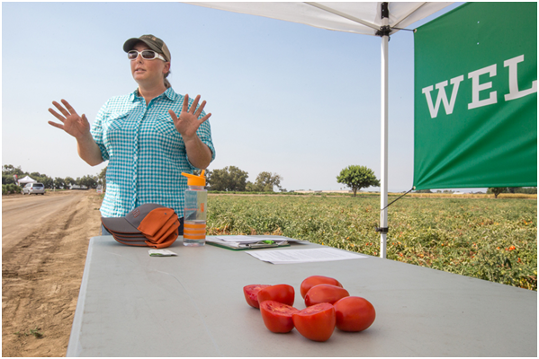 Grace Warner通過番茄剖面,展示番茄作物育種對(duì)加強(qiáng)作果實(shí)硬度(圖/Sue Cockrell,Enterprisephoto)