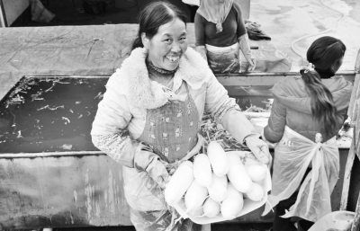 草海鎮(zhèn)白蘿卜種植一年可種三季,面積達(dá)6000余畝,總產(chǎn)值達(dá)3000余萬元。圖為村民在裝載豐收的蘿卜。 陳武帥攝