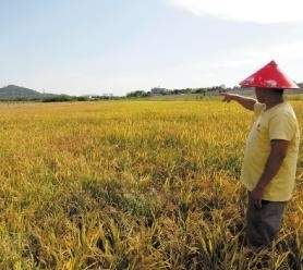 ▲種植戶(hù)看著成熟的稻種心急如焚
