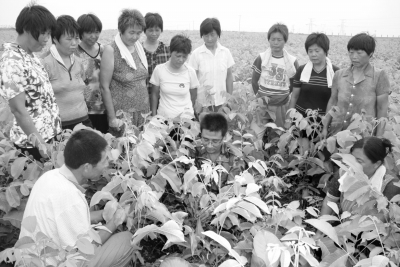 近年來,河北省臨城縣職教中心探索以“校”帶村、校村共建模式,發(fā)展薄皮核桃種苗產(chǎn)業(yè),供應(yīng)太行山方圓百里百萬畝核桃產(chǎn)業(yè)帶所需核桃種苗,帶動(dòng)全縣28個(gè)村5700余戶貧困戶實(shí)現(xiàn)脫貧。圖為臨城縣石家欄職教中心分校選派核桃專家(右下)到當(dāng)?shù)睾颂颐绶庇刂v解核桃苗的嫁接、管理技術(shù)。