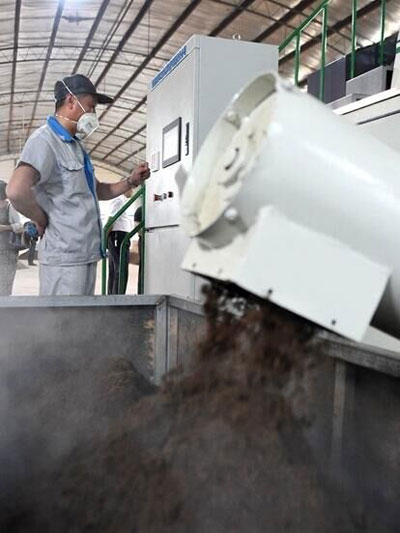 在河南省宜陽縣高村鄉(xiāng)的“碧海秸稈處理制肥中心”,記者看到了秸稈變身有機肥的全過程——成堆的秸稈經(jīng)過粉碎后,被送到一體化發(fā)酵機中進行高溫殺菌、隨后加入功能型微生物菌種進行擴繁、發(fā)酵,6-24個小時后,初肥就出鍋了。這些肥料再靜置堆放5-10天自然發(fā)酵好后,就可以造粒裝袋成有機肥了。