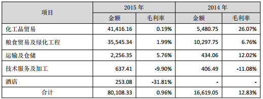 由上表,公司其他收入增長主要來源于化工品貿(mào)易、糧食貿(mào)易及綠化工程等業(yè)務(wù),報(bào)告期內(nèi),上述業(yè)務(wù)收入合計(jì)占其他收入的比例超過96.07%。