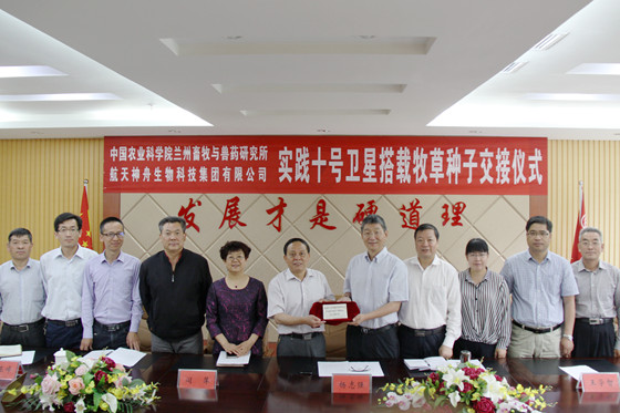 近日,由我國(guó)實(shí)踐十號(hào)返回式科學(xué)實(shí)驗(yàn)衛(wèi)星搭載的牧草種子交接儀式在中國(guó)農(nóng)業(yè)科學(xué)院蘭州畜牧與畜藥研究所舉行。航天神舟生物科技集團(tuán)有限公司趙輝總工程師將蘭州牧藥所搭載的14份牧草種子親手交給所長(zhǎng)楊志強(qiáng)。會(huì)議由副所長(zhǎng)張繼瑜主持。