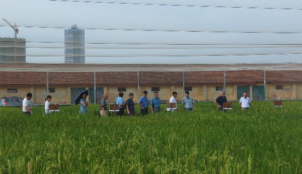 考察組先后對廣西自治區(qū)農(nóng)科院水稻所、玉林市農(nóng)科院、廣東肇慶市農(nóng)科所及廣州市農(nóng)科院承擔(dān)的試驗進(jìn)行了考察。從考察的情況來看,各承擔(dān)試驗單位對試驗工作都很重視,試驗基礎(chǔ)條件良好,試驗人員認(rèn)真負(fù)責(zé),田間排列規(guī)范,栽培管理水平普遍較高??疾熘幸舶l(fā)現(xiàn)一些問題,如個別試驗地肥力不夠均勻、參試品種長勢偏弱等。對此,考察組專家對試驗人員進(jìn)行了現(xiàn)場指導(dǎo),提出了具體的改進(jìn)意見。從參試品種田間表現(xiàn)情況看,生產(chǎn)試驗品種群體整齊,長勢良好,穗大粒多,豐產(chǎn)性好。區(qū)試品種多數(shù)生育期適中,綜合性狀良好,但也發(fā)現(xiàn)個別品種純度較差。