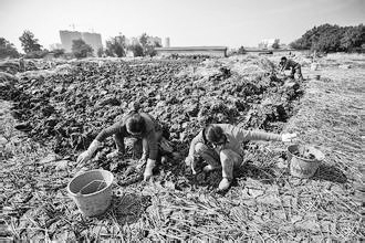 每年冬季荸薺收獲時(shí)節(jié),一望無(wú)際的農(nóng)田里就會(huì)呈現(xiàn)一幅豐收景象,三五成群的村民們便會(huì)揮舞鋤頭收挖荸薺。劉新軒攝