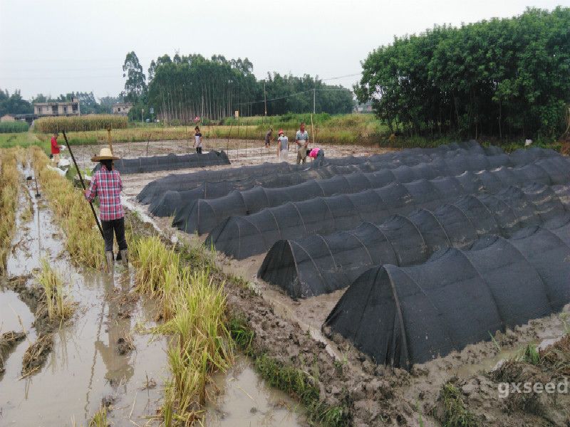 品種生產(chǎn)試驗和玉林市晚造田間種植鑒定圃播種工作。播種當天天氣反復無常,種子站工作人員克服困難天氣,播種采取透氣性薄膜育秧的方式進行,并按照試驗標準全程監(jiān)督。