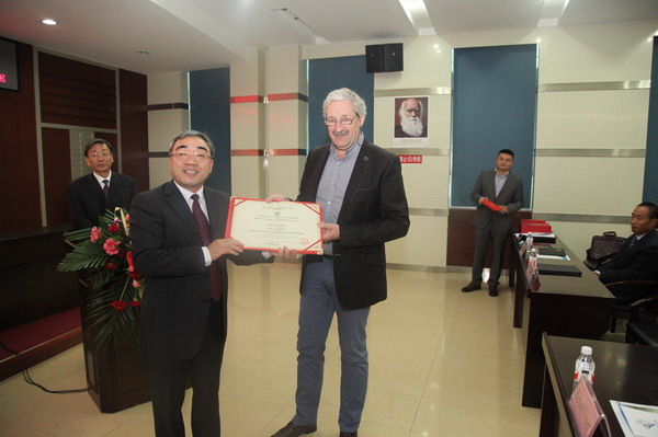 會上,院長張新友、荷蘭瓦格寧根大學科研校長理查德·維薩分別致辭,我院經(jīng)濟作物研究所所長胡海燕與荷蘭瓦格寧根大學植物育種系理查德·維薩主任簽署了《河南省農(nóng)業(yè)科學院經(jīng)濟作物研究所與荷蘭瓦格寧根大學植物育種系合作備忘錄》,張新友院長為理查德·維薩教授和白玉玲博士、教授頒發(fā)了“名譽教授”聘任證書。
