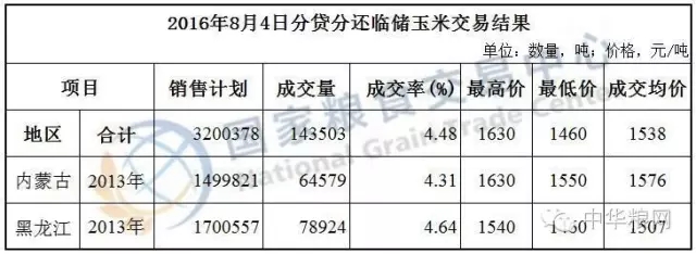 8月4日分貸分還臨儲(chǔ)玉米交易結(jié)果