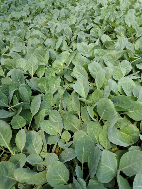 甘藍(lán)品種“綠霸”,扁圓形,綠色,色澤好,單株產(chǎn)量1千克,移栽后60天可以采收,結(jié)球不夠緊實(shí),不適宜外銷,可在當(dāng)?shù)劁N售?,F(xiàn)已在馬街蔬菜基地示范30畝。