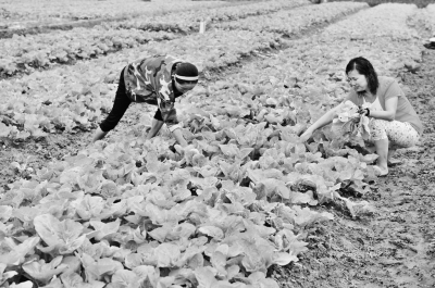 據(jù)了解,“早熟五號”特早熟,長勢旺,生長期50~55天,耐熱,耐濕,抗病性強,適于高溫,多雨季節(jié)作小白菜栽培,也可作早秋結球白菜用,葉片厚,無毛,葉質軟,葉球白色,凈菜率高,品質佳,畝產(chǎn)高達5000公斤。目前,該鄉(xiāng)種植“早熟五號”小白菜面積300余畝,種植農(nóng)戶每畝年收入達1萬元。圖為菜農(nóng)在除草。 李必祥攝