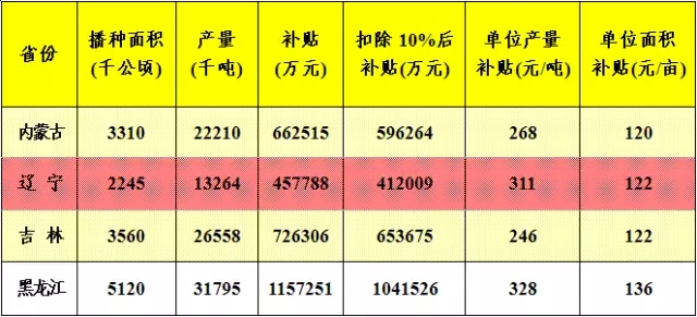 考慮到有大量播種面積不在補(bǔ)貼范圍內(nèi),實際每畝補(bǔ)貼金額可能要更高。具體補(bǔ)貼標(biāo)準(zhǔn),需等待各省公布結(jié)果(10月末左右),以上數(shù)據(jù)僅供參考。