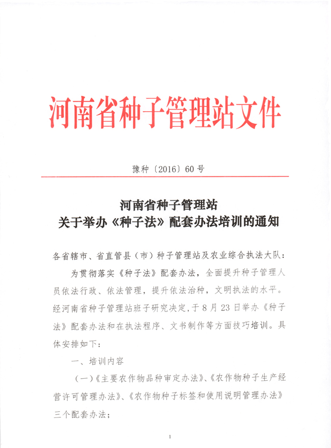 河南:關(guān)于舉辦《種子法》配套辦法培訓(xùn)的通知
