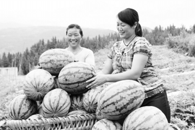重慶市武隆縣滄溝鄉(xiāng)惠眾西瓜合作社社員在采收西瓜。本報記者鄧?yán)z