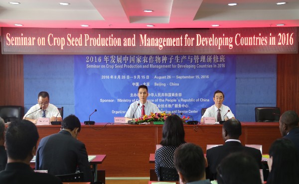 由商務(wù)部主辦、全國農(nóng)技中心承辦的“2016年發(fā)展中國家農(nóng)作物種子生產(chǎn)與管理研修班”于8月26日在北京開班。全國農(nóng)技中心杭大鵬書記出席開班儀式并致辭。