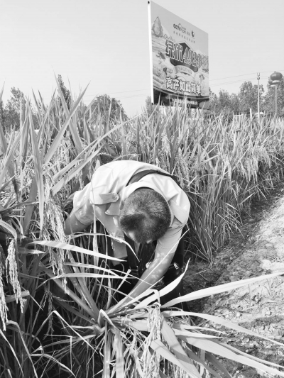圖為經(jīng)銷商在四川省新津縣方興鎮(zhèn)大安村水稻示范基地察看“綠優(yōu)4923”長勢(shì)。 本報(bào)記者宋修偉文/圖