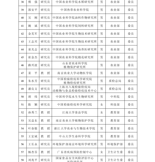 農(nóng)業(yè)部關(guān)于印發(fā)第五屆農(nóng)業(yè)轉(zhuǎn)基因生物安全委員會組成人員名單的通知
