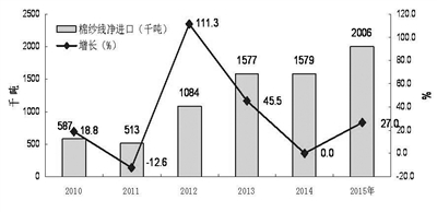 今年棉花的產(chǎn)量、價(jià)格、質(zhì)量很多指標(biāo)讓整個(gè)市場(chǎng)措手不及。而國(guó)家棉花產(chǎn)業(yè)技術(shù)體系/中國(guó)農(nóng)科院棉花研究所公布的“2016年中國(guó)棉花生產(chǎn)景氣報(bào)告”顯示,由于國(guó)際棉價(jià)遠(yuǎn)低于國(guó)產(chǎn)價(jià),棉紗線(xiàn)進(jìn)口增長(zhǎng)迅速,2010—2015年6年合計(jì)凈進(jìn)口734.5萬(wàn)噸,比前6年合計(jì)凈增527萬(wàn)噸,增長(zhǎng)254%。