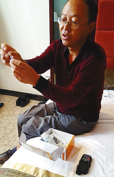 縣種子管理站的詹站長(zhǎng)向記者演示如何檢測(cè)“轉(zhuǎn)基因”