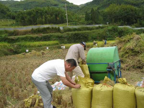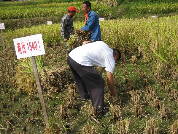 經(jīng)農(nóng)技人員對(duì)各個(gè)小區(qū)實(shí)收產(chǎn)量過磅,統(tǒng)一折干率以78%計(jì)算。計(jì)算結(jié)果,甬優(yōu)1540組合為第一,平均畝產(chǎn)531.8kg,比對(duì)照中浙優(yōu)8號(hào)增產(chǎn)7%,甬優(yōu)15組合為第二,平均畝產(chǎn)526kg,比對(duì)照中浙優(yōu)8號(hào)增產(chǎn)5.8%,甬優(yōu)8050組合為第三,平均畝產(chǎn)520.3kg,比對(duì)照中浙優(yōu)8號(hào)增產(chǎn)4.7%,通過實(shí)收產(chǎn)量基本與現(xiàn)場觀摩的長勢(shì)長相相符。從現(xiàn)場的長勢(shì)看,甬優(yōu)15雖然產(chǎn)量較高,但生育期比對(duì)照長7—8天,其稻曲病的抗性較差。甬優(yōu)1540不但是產(chǎn)量,而且其抗逆性能是品試中前列,種子部門打算將該組合列入2017年全縣糧食功能區(qū)、種糧大戶、產(chǎn)糧農(nóng)場或合作社等糧食種植主體新增當(dāng)家品種之一。其他組合還要進(jìn)一步試驗(yàn),以不同海拔多點(diǎn)試種得出其生長規(guī)律和適應(yīng)栽培的新技術(shù)。
