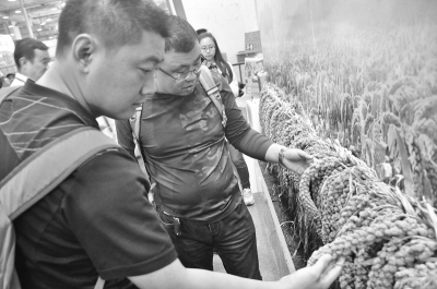 在本次“雙交會(huì)”眾多的展臺(tái)中,大部分展臺(tái)被玉米占據(jù),唯獨(dú)來自河北張家口的巡天種業(yè)展示了一排谷子。“我們這個(gè)谷子產(chǎn)量高,口感還好,非常適合調(diào)結(jié)構(gòu)種植。”巡天種業(yè)常務(wù)副總經(jīng)理葉世峰向記者推薦其公司的主打產(chǎn)品——“張雜谷十三”。